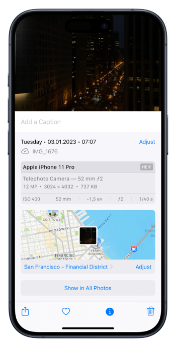 VisionCamera provides an API to easily add such location tags to captured photos or videos.